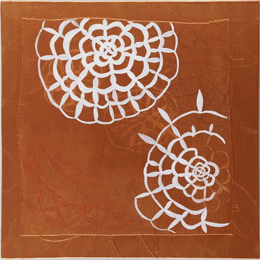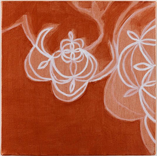 Es un grupo de 9 cuadros de diferentes formatos, desplegados en la pared en una linealidad que sugiere continuidad o temporalidad. El punto de partida es la pintura y la manera incierta como la enfrento: Una construcción basada en un pensamiento derivado del hacer manual, que en este caso lo represento asociado con un tipo de tejido conocido como “frivolidad” . Uso el tejido como un símil de la pintura, que para mi es el plano en que se cruzan diferentes pensamientos y experiencias, emociones y recuerdos, que se entretejen y se sueltan en una construcción siempre indefinida, inacabada e infinita.