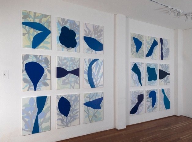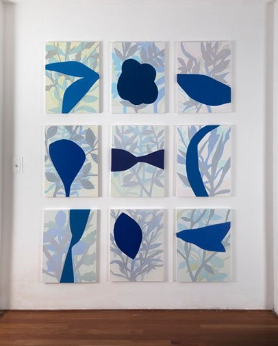 Yo reinterpreto esta operación plástica en una nueva composición, acercándome a la idea romántica del jardín, a través de una sucesión de capas sobrepuestas de pintura. Añado al final unas formas sólidas, también derivadas del mundo botánico, pero que yo asocio con la modernidad, las cuales son la estrategia para armar una composición cuyo soporte es la pared.