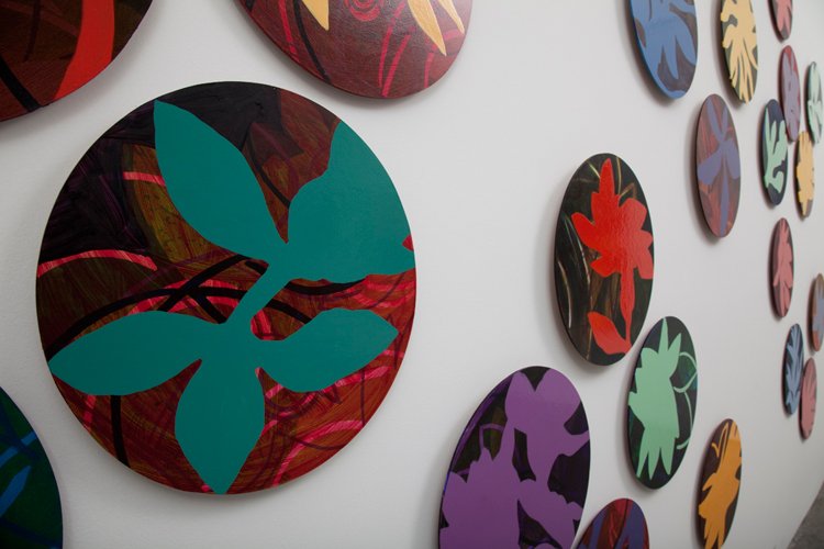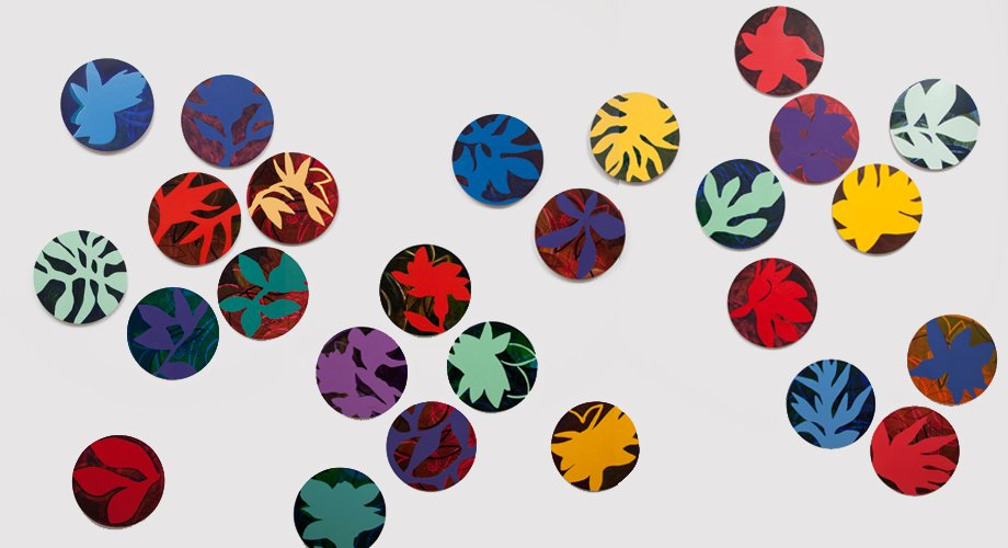 26 piezas de 40 cm de diámetro c/u, esmalte sobre madera, 2011