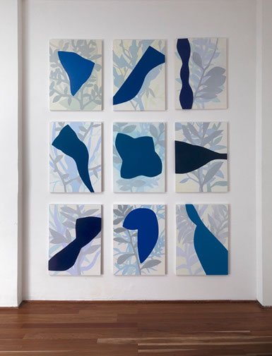 Yo reinterpreto esta operación plástica en una nueva composición, acercándome a la idea romántica del jardín, a través de una sucesión de capas sobrepuestas de pintura. Añado al final unas formas sólidas, también derivadas del mundo botánico, pero que yo asocio con la modernidad, las cuales son la estrategia para armar una composición cuyo soporte es la pared.